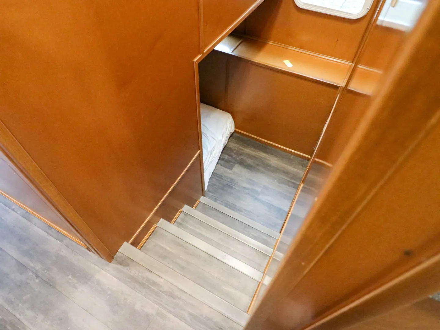 The Driftwood is equipped with a queen sized bed in the master state room and a full sized bed in the cuddy cabin.